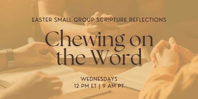 Chewing on the Word gathers teachers, catechists, and seekers each Wednesday at 12:00 PM ET / 9:00 AM PT for a half-hour of reflection on the upcoming Sunday Gospel. Together we listen, share, and let the Word do its quiet work within us.